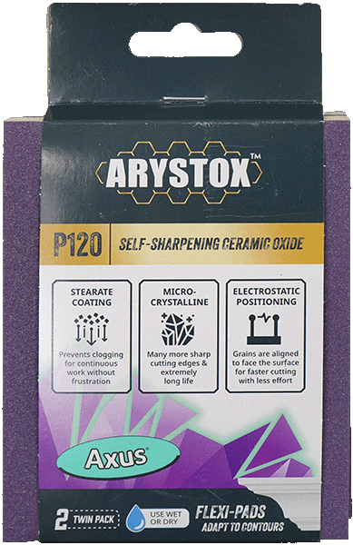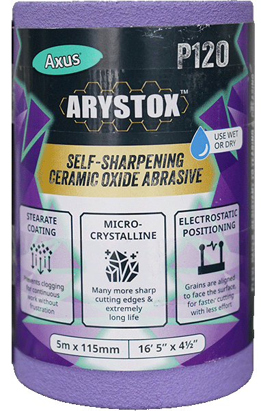 The Arystox Range of Abrasives combines cutting-edge technology for exceptional performance. Featuring ceramic oxide for rapid removal and long life, stearate coating to prevent clogging, double resin bonding for minimal grain loss, and a flexible latex backing that resists tearing and creasing, these abrasives are designed to meet the highest standards for precision and durability.